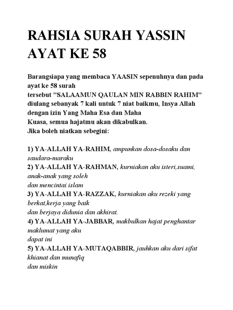 | Baca: Rahsia Surah Yassin Ayat Ke 58 |