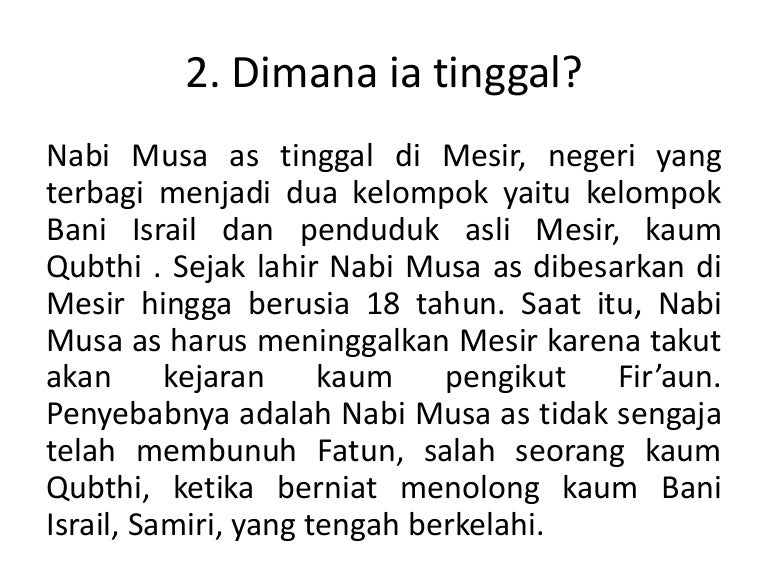 Judul Surah: Sejarah Kehidupan Nabi Musa A S |